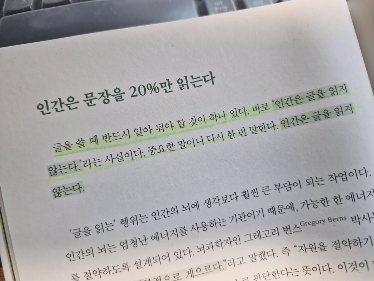 독자는 나의 글을 전부 읽지 않아요. 훑어보면서 전체적인 맥락을 보는 겁니다.