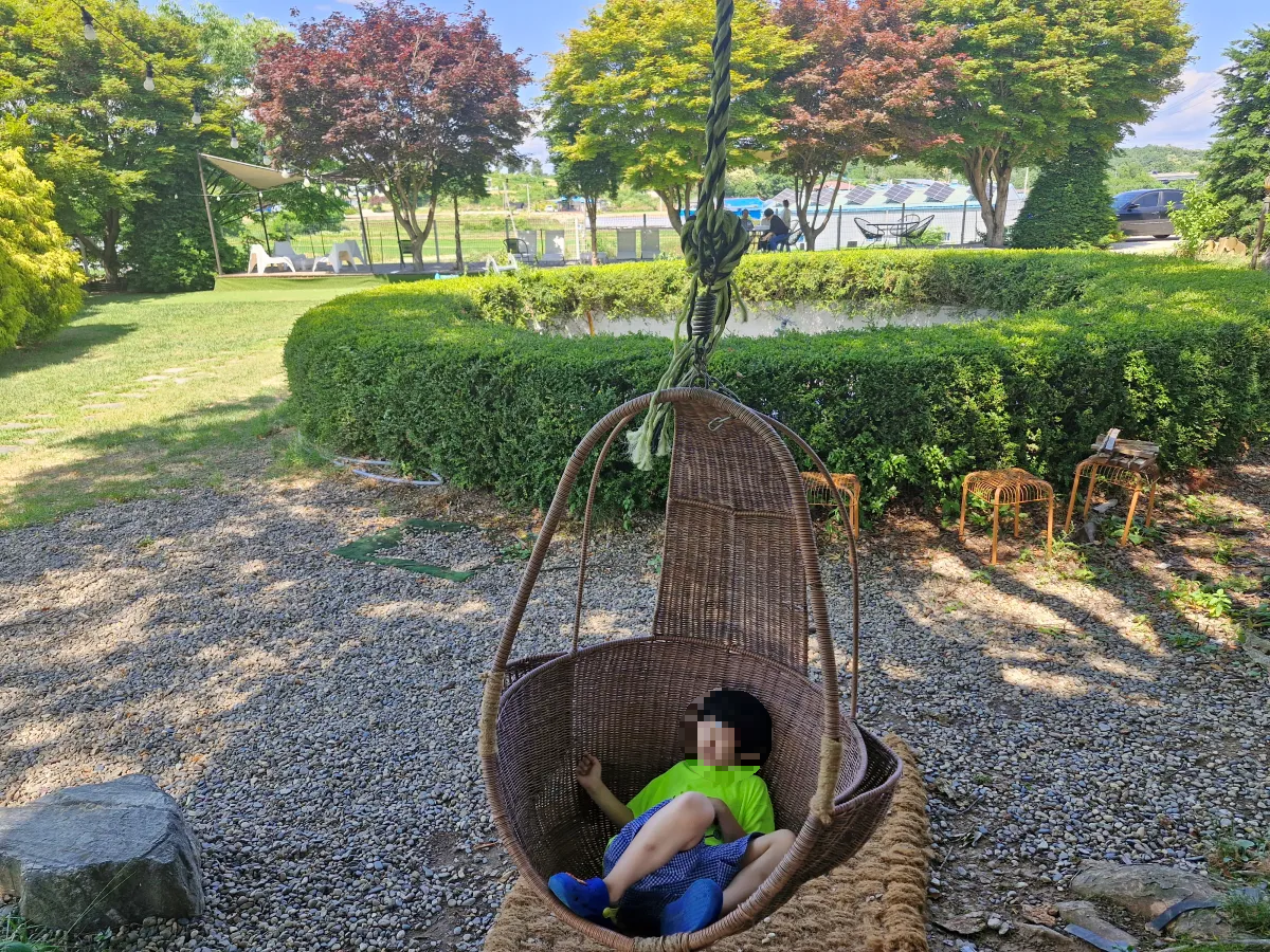 흔들의자도 있고, 모래놀이 할 수 있는 공간도 있습니다.