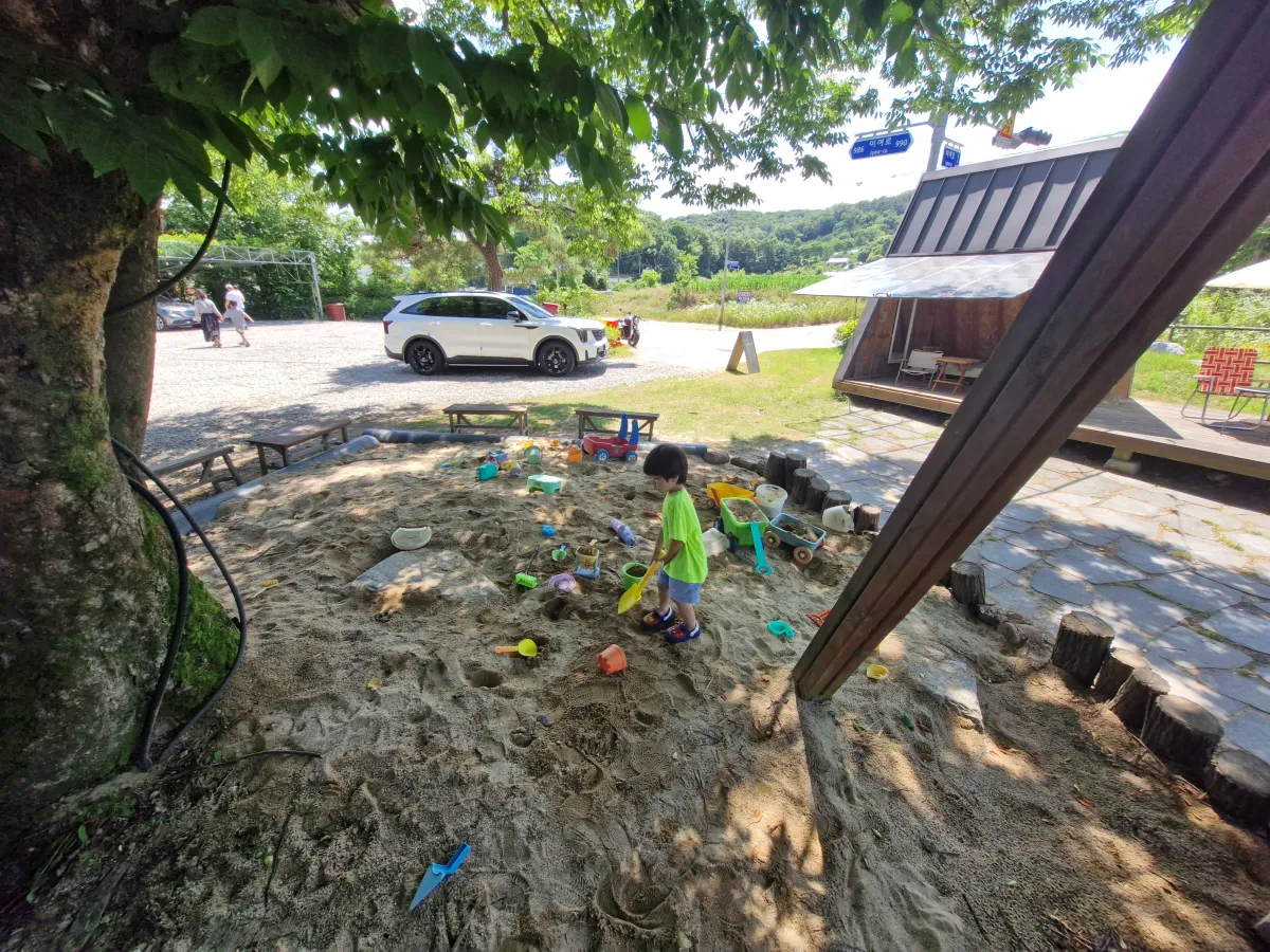 아이들은 분필놀이, 모래놀이, 흔들의자, 캠핑장 등 이리저리 뛰어다니더라고요.